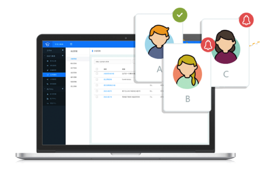 支持会员手动分组和自动分组,按照用户跟公众号之间的联系,将用户自动划分为粉丝管理、用户管理、会员管理,还可支持机构自己手动分组。