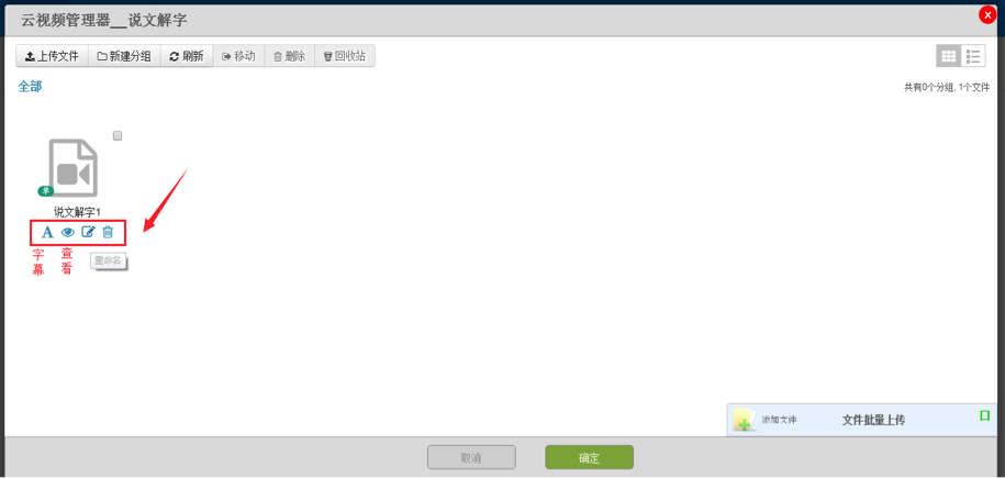 3)点击视频下方的图标,可查看视频的字幕、地址列表等信息,也可以对视频进行重命名、删除等操作。